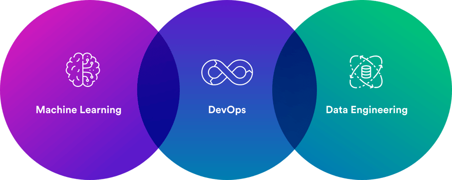 MLOps has three interwoven elements: Machine Learning, DevOps, and Data Engineering.